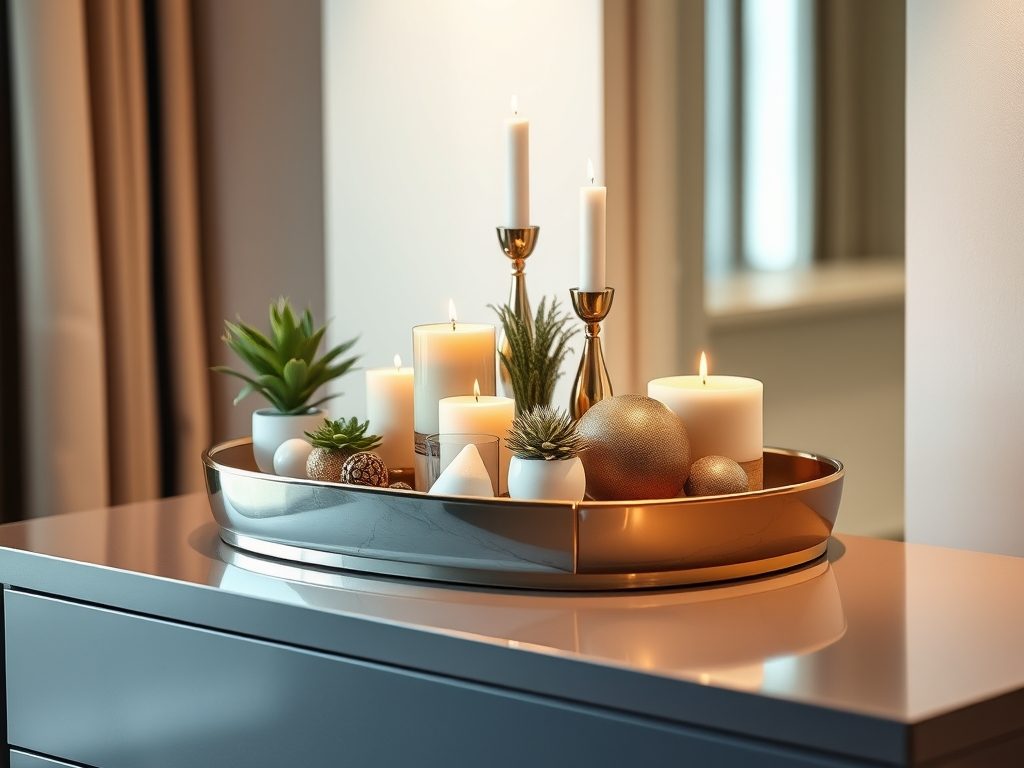 Organizacja drobiazgów na komodzie z wykorzystaniem tacek dekoracyjnych